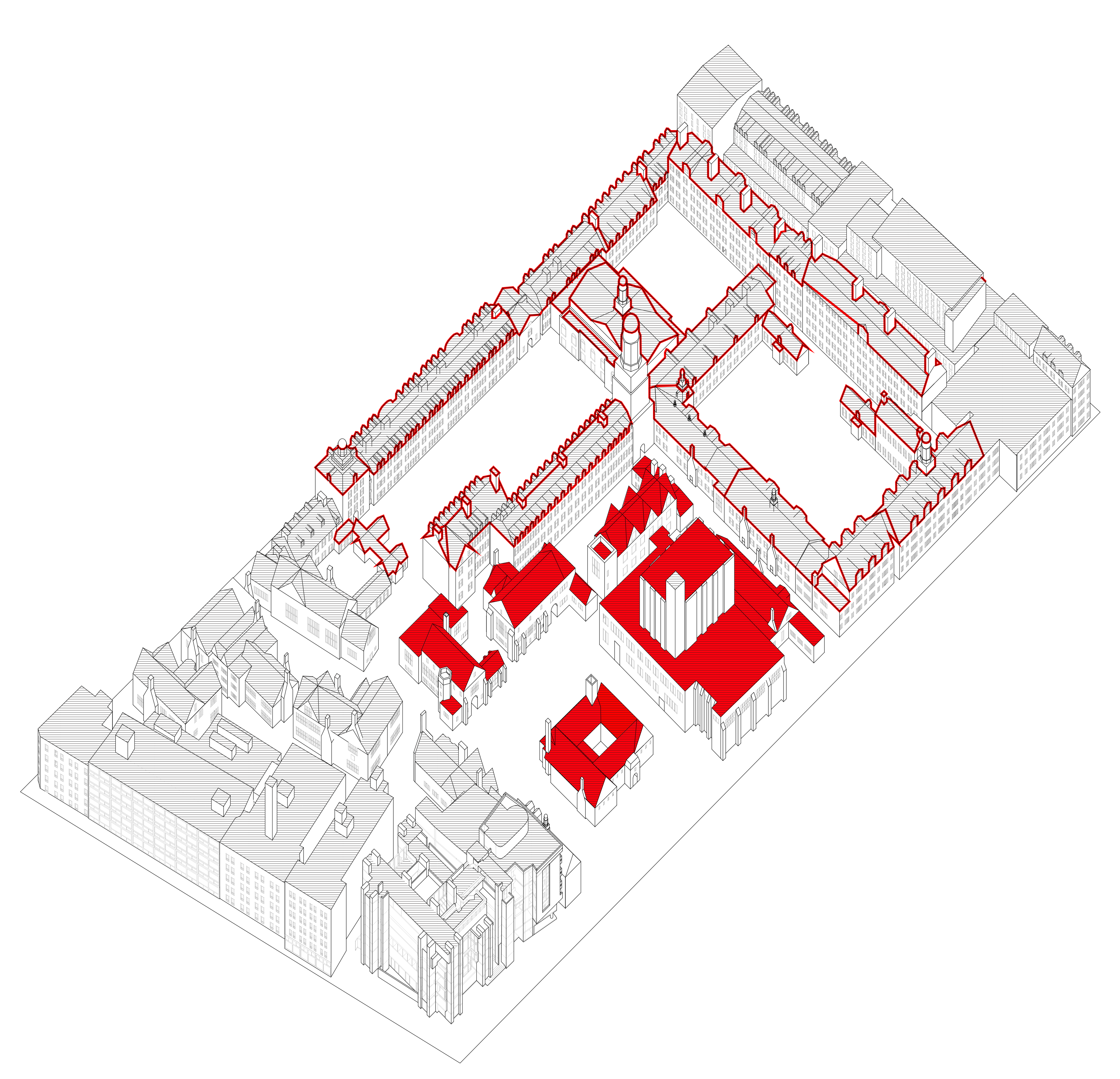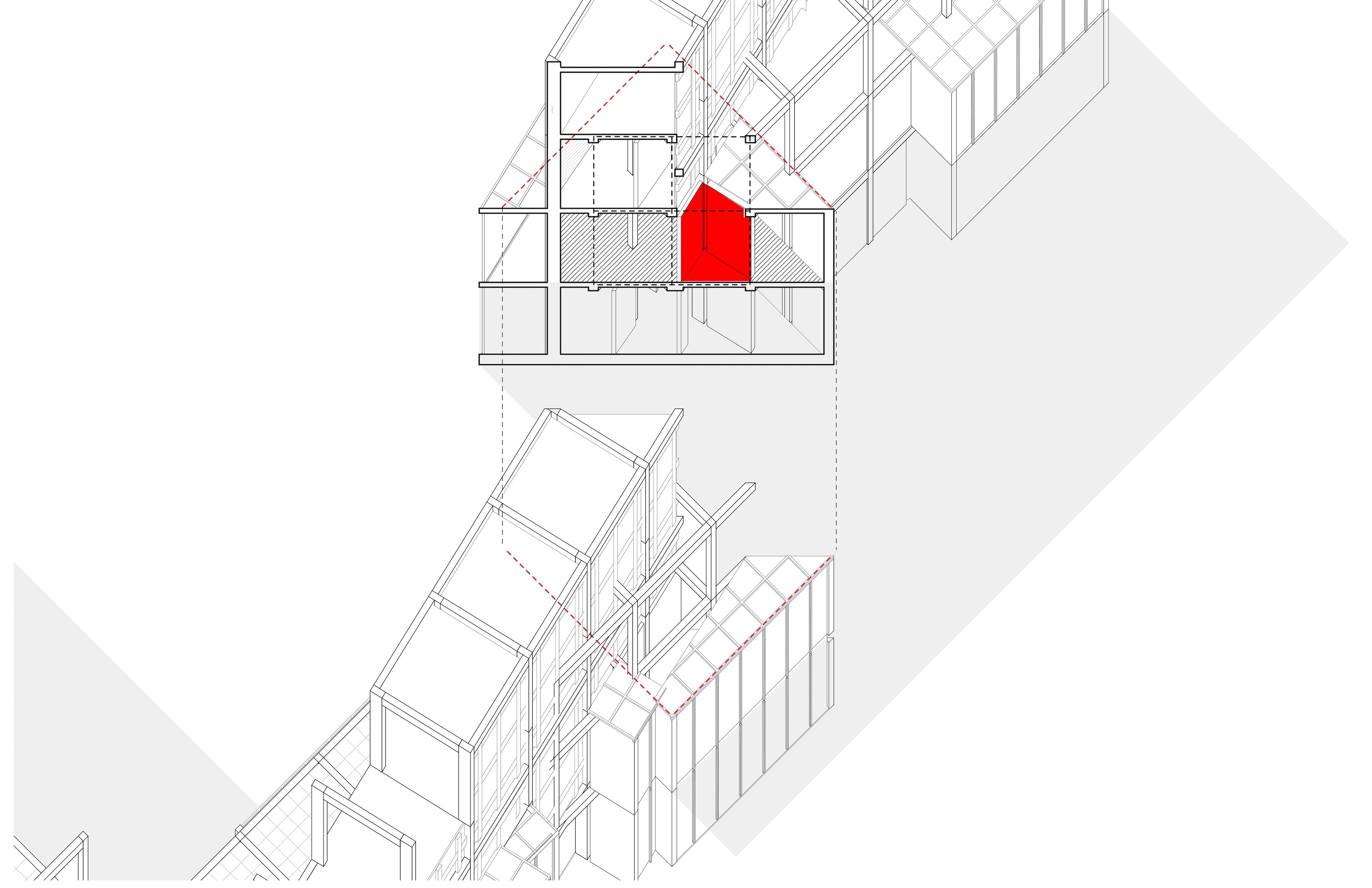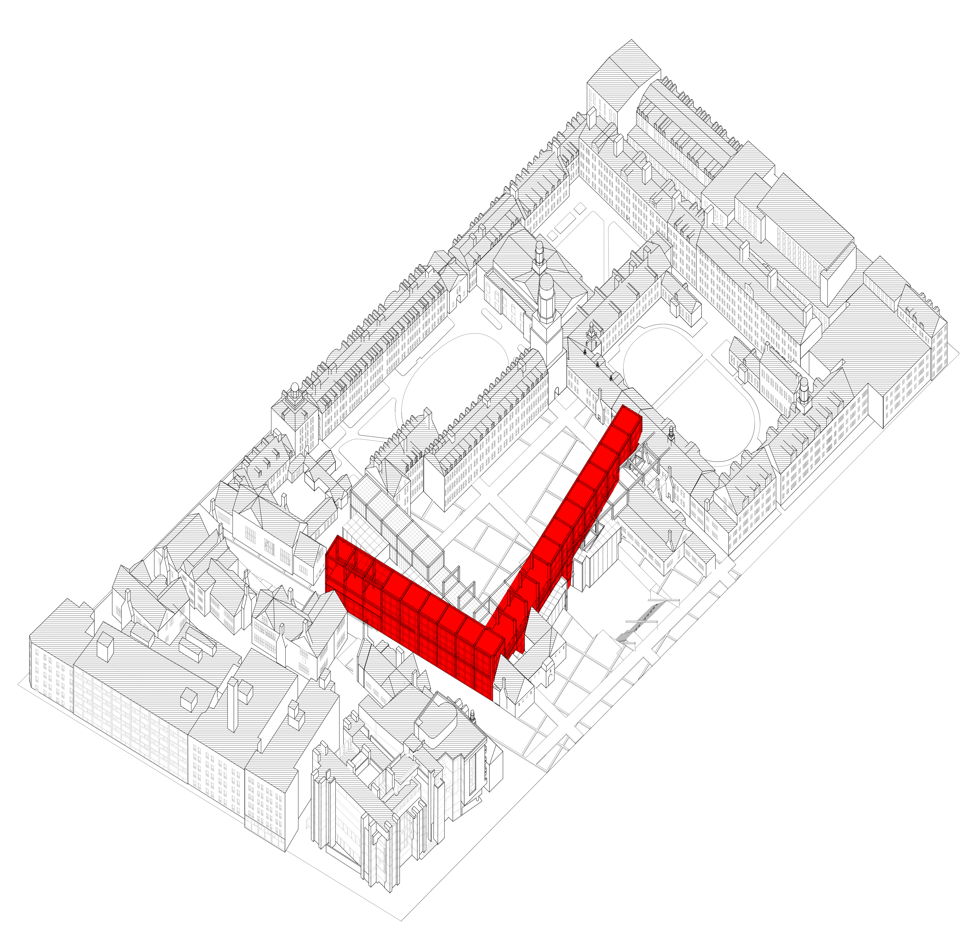 Finally, the project proposes a new ground condition on the block, which is extremely figural. The continuous ground merges various levels of the building.