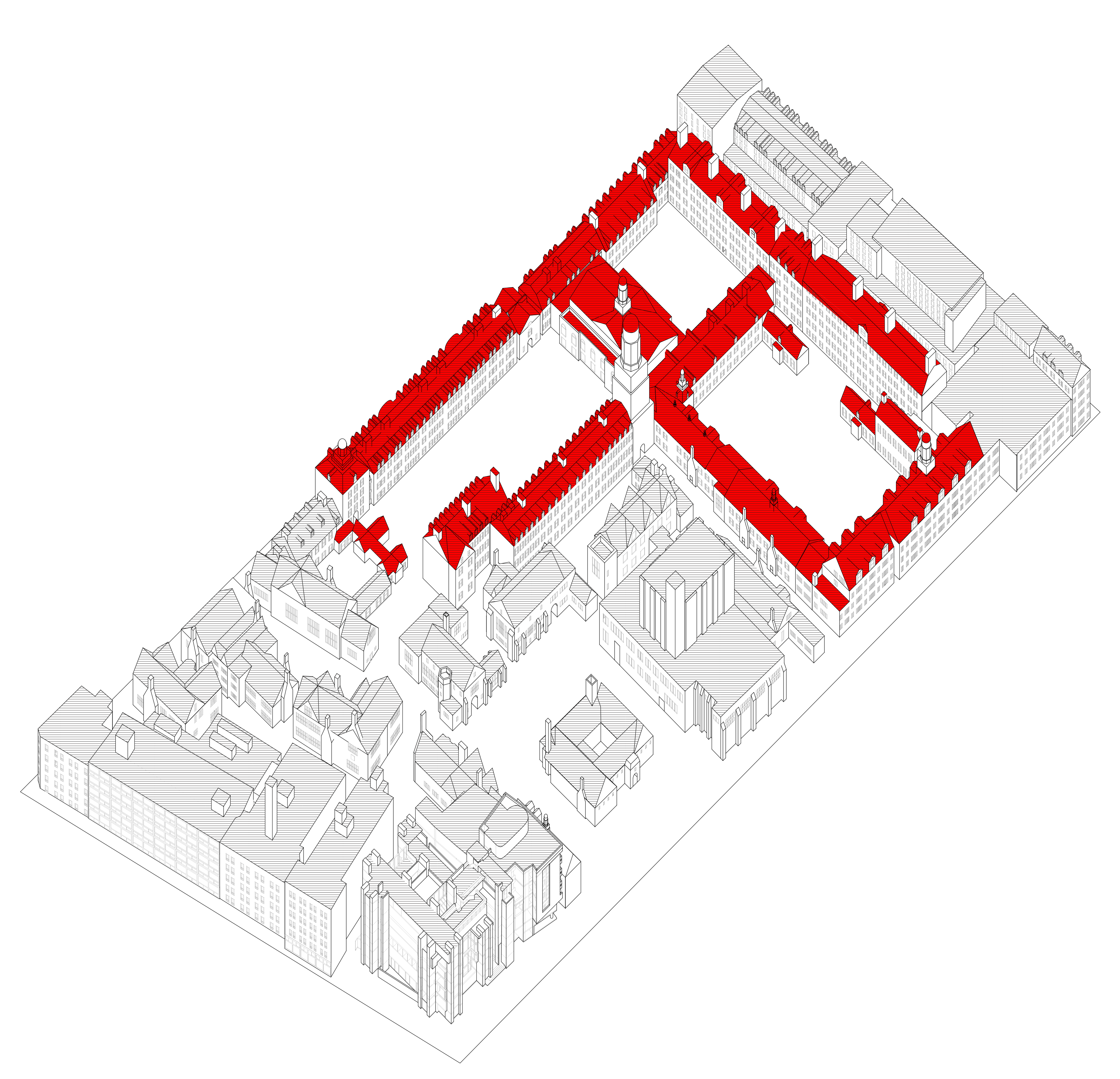 On the south part of the block, there is a unique figural ground condition that is enclosed by the figures on the site, yet no apparent articulation of ground.